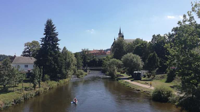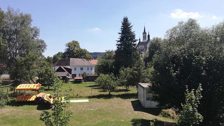 Die Unterkunft Dům u řeky befindet sich in Vyšší Brod, 28 km von Schloss Krumau und 44 km von Casino Linz entfernt. In der nahen Umgebung liegen der Stausee Lipno in 8,8 km Distanz und der Flughafen Budweis, der 51 km entfernt ist.