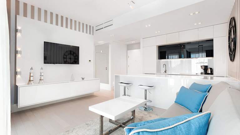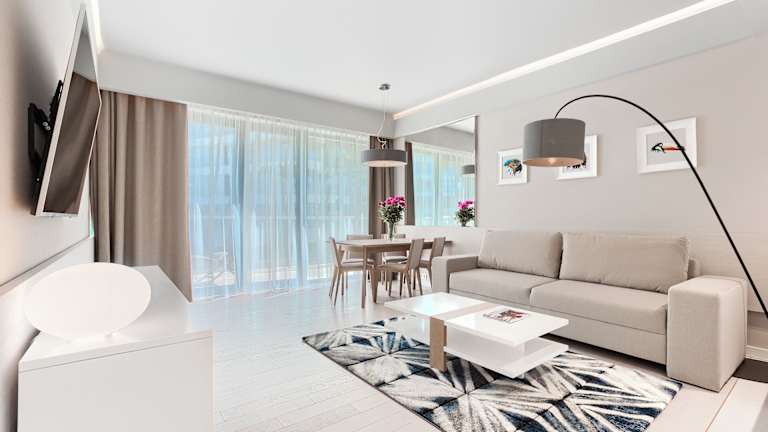 Die Wohneinheiten des Dune Resort Mielno - B sind mit einem Flachbild-TV ausgestattet. Einige Einheiten bieten darüber hinaus einen Sitzbereich und/oder einen Balkon.