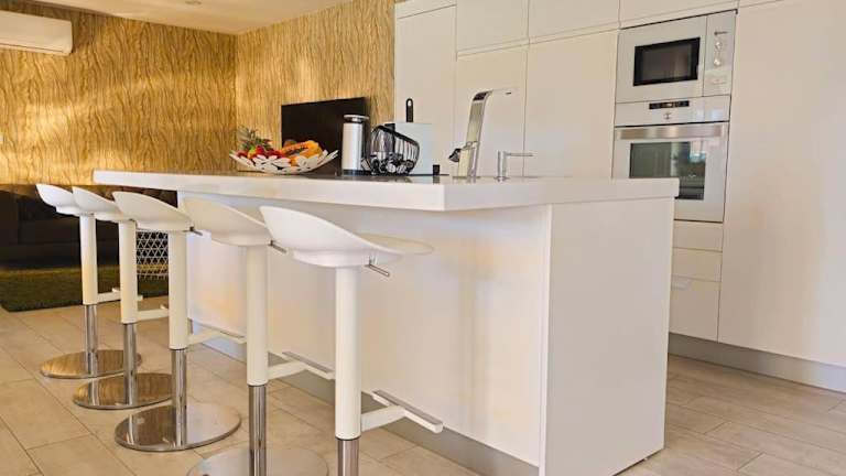 Die Ferienwohnung umfasst 3 Schlafzimmer und ist mit einer voll ausgestatteten Küche, einem Kühlschrank und einem Geschirrspüler ausgestattet. Zur weiteren Ausstattung gehören ein Flachbild-TV und ein Sitzbereich, sowie ein Badezimmer mit Bidet. Handtücher und Bettwäsche werden zur Verfügung gestellt.