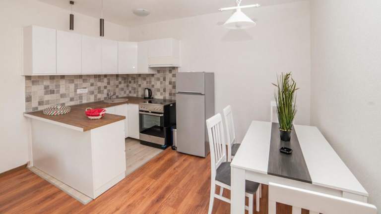 Die Ferienwohnung verfügt über 1 Schlafzimmer, ein Wohnzimmer und eine voll ausgestattete Küche mit Kühlschrank und Wasserkocher. Ein Badezimmer mit Dusche und kostenlosen Pflegeprodukten ist ebenfalls vorhanden. Handtücher und Bettwäsche werden bereitgestellt.
