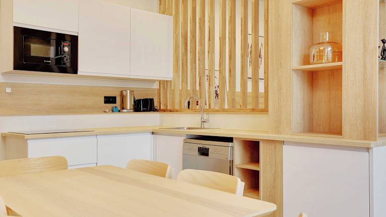 Die Wohnung besteht aus 2 Schlafzimmern, einem Wohnzimmer und einer voll ausgestatteten Küche, die mit einem Kühlschrank und einer Kaffeemaschine ausgestattet ist. Es gibt 2 Badezimmer, die mit einer Badewanne oder Dusche und kostenlosen Pflegeprodukten ausgestattet sind. Handtücher und Bettwäsche werden ebenfalls bereitgestellt.