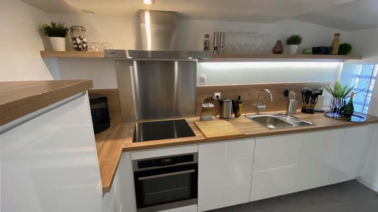 Die Ferienwohnung umfasst zwei Schlafzimmer, ein Badezimmer sowie einen Essbereich. Zur Ausstattung gehören Bettwäsche, Handtücher, ein Flachbild-TV mit Satellitenkanälen und eine voll ausgestattete Küche.