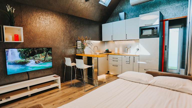 Das Ferienhaus verfügt über ein gemütliches Schlafzimmer und ein Badezimmer. Es ist mit kostenfreiem WLAN, einer Klimaanlage und einem Flachbild-TV ausgestattet. Die voll ausgestattete Küche bietet Ihnen die Möglichkeit, Ihre eigenen Mahlzeiten zuzubereiten. Genießen Sie den Blick auf den Garten von der Terrasse aus und nutzen Sie die bereitgestellte Bettwäsche und Handtücher.