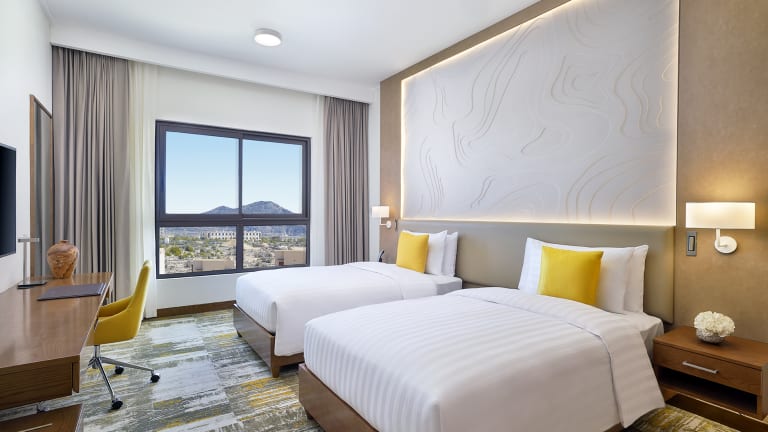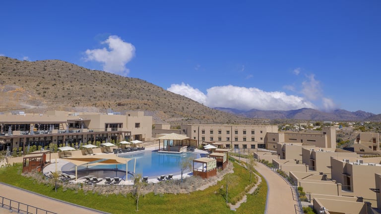 Das dusitD2 Naseem Resort im Jabal Akhdar, Oman, ist ein einzigartiger Rückzugsort in den Bergen, der modernen Komfort mit einer atemberaubenden natürlichen Umgebung verbindet. Hier können Sie sich in luxuriösen Zimmern mit Balkon, kostenfreiem WLAN und Flachbild-TV entspannen. Das Resort bietet eine Vielzahl von Restaurants und Bars sowie einen Wellnessbereich, einen Außenpool, ein Fitnesscenter und einen Miniclub. Darüber hinaus gibt es zahlreiche Aktivitäten wie Seilrutschen und Klettern an der Wand. In der Nähe der Unterkunft finden Sie beliebte Sehenswürdigkeiten wie den Jabal Akhdar, das Dorf Sugra und die historische Stadt Nizwa.