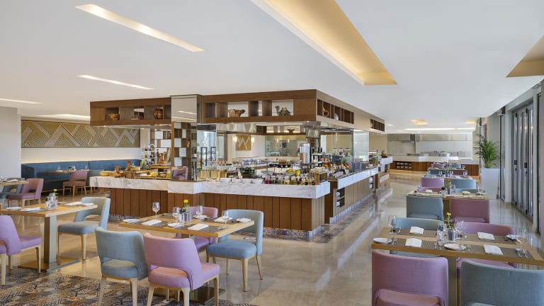 In der Unterkunft gibt es zwei Restaurants, das Hauptrestaurant "Veranda" und das Spezialitätenrestaurant "Sky View". Das Hauptrestaurant serviert Frühstück, Mittag sowie Abendessenbietet eine Vielzahl von Küchen, darunter asiatische, internationale, indische, regionale und thailändische Gerichte. Es werden auch spezielle Gerichte für Babys, glutenfreie, lactosefreie, vegetarische und vegane Optionen sowie Vollwertkost angeboten. Das Spezialitätenrestaurant serviert mediterrane und orientalische Küche. Es gibt auch eine Poolbar, in der Sie einen erfrischenden Drink sowie Snacks mit Blick auf die Berge genießen können.