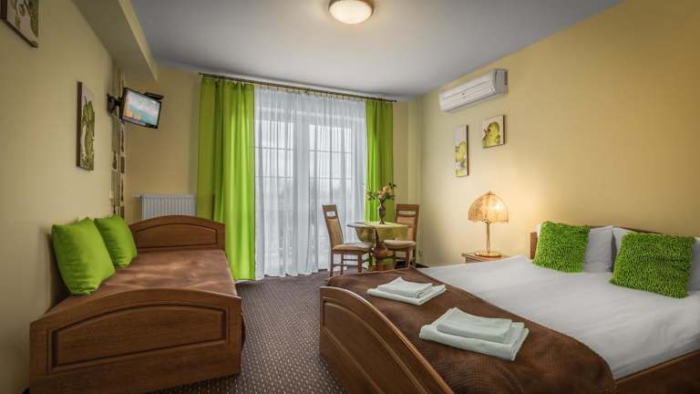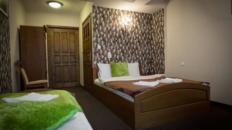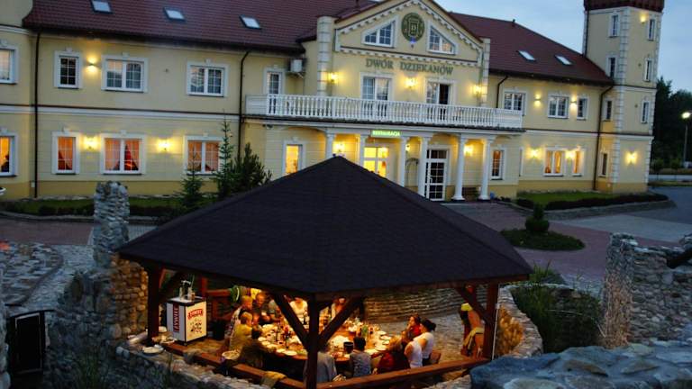 Das Hotelrestaurant mit Bar serviert traditionelle polnische Gerichte. Auf Anfrage sind auch Speisen für spezielle Ernährungsbedürfnisse erhältlich. Zudem wird Essenslieferung in die Unterkunft angeboten.