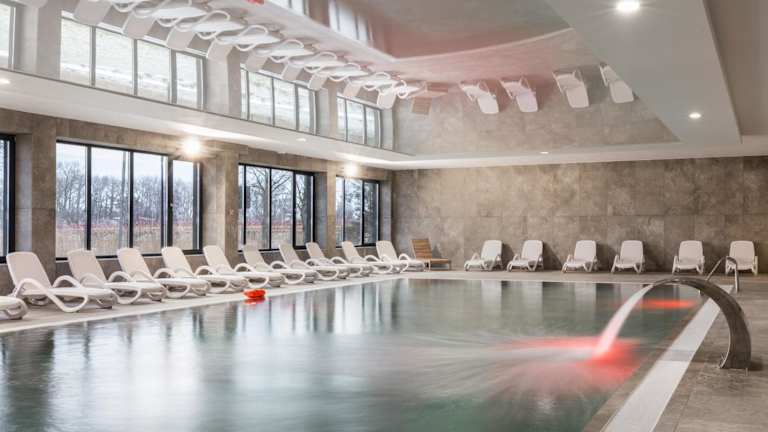 Der Wellnessbereich des Apartments bietet einen Innenpool, eine Sauna und einen Whirlpool, in dem Sie sich entspannen können. Für Kinder gibt es einen Spielplatz, auf dem sie sich austoben können. Die Unterkunft bietet auch kostenfreies WLAN und eine 24-Stunden-Rezeption, um Ihnen einen angenehmen Aufenthalt zu ermöglichen.