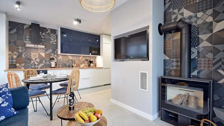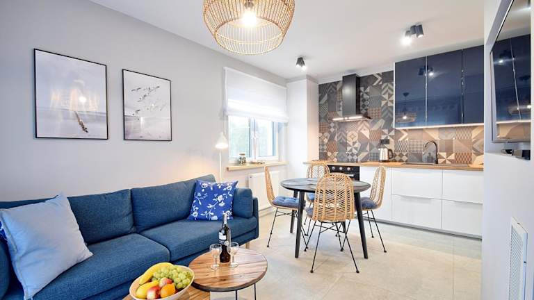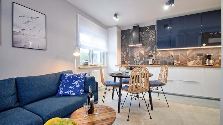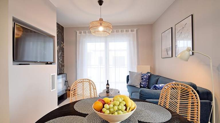 Das e-apartament nad morzem Apartamentuj bietet komfortable Apartments mit Balkon und Gartenblick. Die Apartments verfügen über ein Schlafzimmer, ein Wohnzimmer und eine voll ausgestattete Küchenzeile mit Kühlschrank und Kaffeemaschine. Das Badezimmer ist mit einer Dusche und kostenlosen Pflegeprodukten ausgestattet. Handtücher und Bettwäsche werden gestellt.