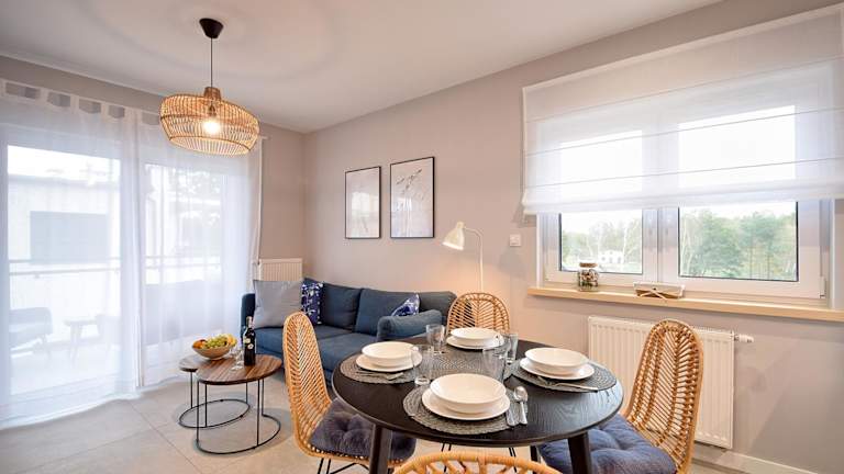 Verbringen Sie einen erholsamen Aufenthalt im e-apartament nad morzem Apartamentuj in Mielno. Die Unterkunft bietet komfortable Apartments mit Balkon und kostenfreien Privatparkplätzen. Genießen Sie die Nähe zum Strand und nutzen Sie die vielfältigen Freizeitmöglichkeiten wie Wandern und Radfahren. Das Apartment verfügt über ein Schlafzimmer, ein Wohnzimmer und eine voll ausgestattete Küchenzeile. Das freundliche Personal steht Ihnen jederzeit zur Verfügung.