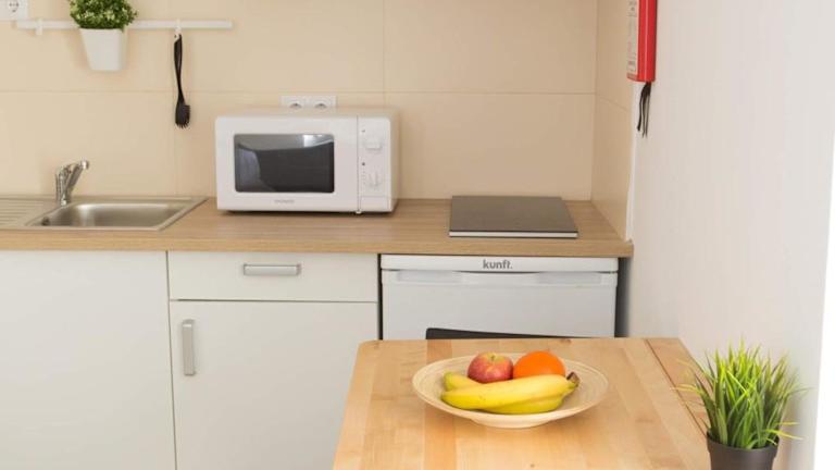 Die Ferienwohnung verfügt über ein Schlafzimmer, ein Wohnzimmer mit einem Flachbild-TV mit Kabelkanälen, eine voll ausgestattete Küche mit Kühlschrank und Mikrowelle sowie ein Badezimmer mit Dusche. Handtücher und Bettwäsche werden bereitgestellt.