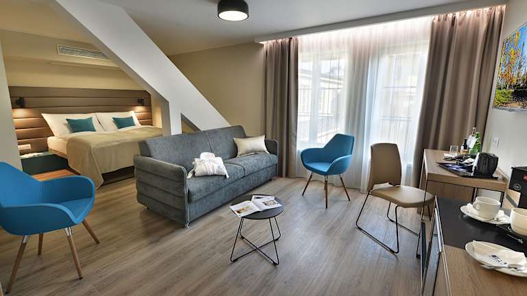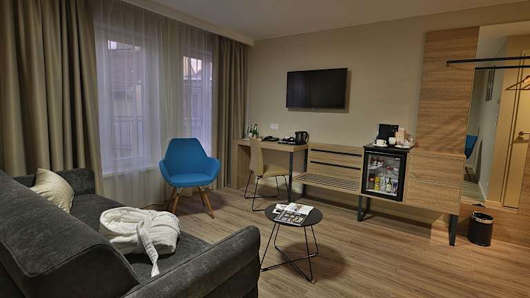 Die klimatisierten Zimmer sind mit einem Queensizebett, einem Sofabett sowie weiteren Annehmlichkeiten wie Minibar, Minikühlschrank, Schreibtisch, Wasserkocher, Safe und Flachbild-TV ausgestattet. Jedes Zimmer bietet ein eigenes Badezimmer mit Badewanne oder Dusche und ist mit Bettwäsche sowie Handtüchern versehen. Es stehen sowohl Nichtraucher- als auch Raucherzimmer zur Verfügung, sowie barrierefreie Unterkünfte.