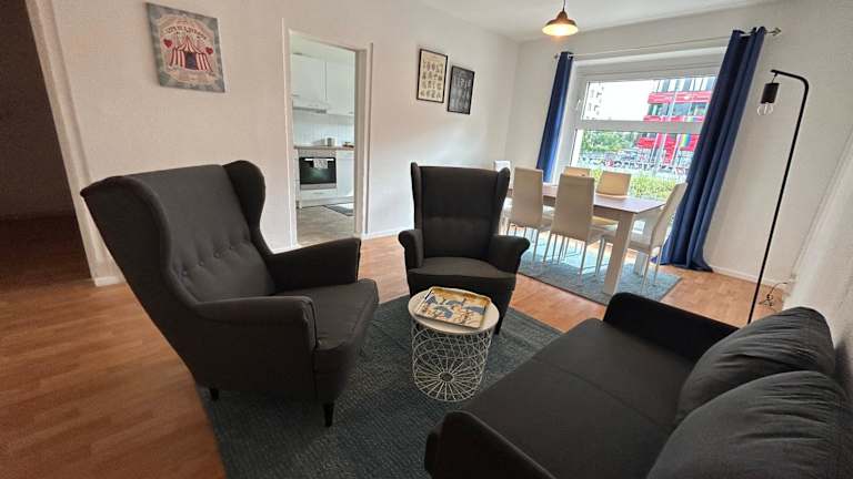 Die Ferienwohnung besteht aus drei Schlafzimmern, einem Wohnzimmer und einer voll ausgestatteten Küche, die mit einem Kühlschrank und einer Kaffeemaschine ausgestattet ist. Zudem steht ein Badezimmer mit Badewanne oder Dusche und Haartrockner zur Verfügung. Handtücher und Bettwäsche werden bereitgestellt.