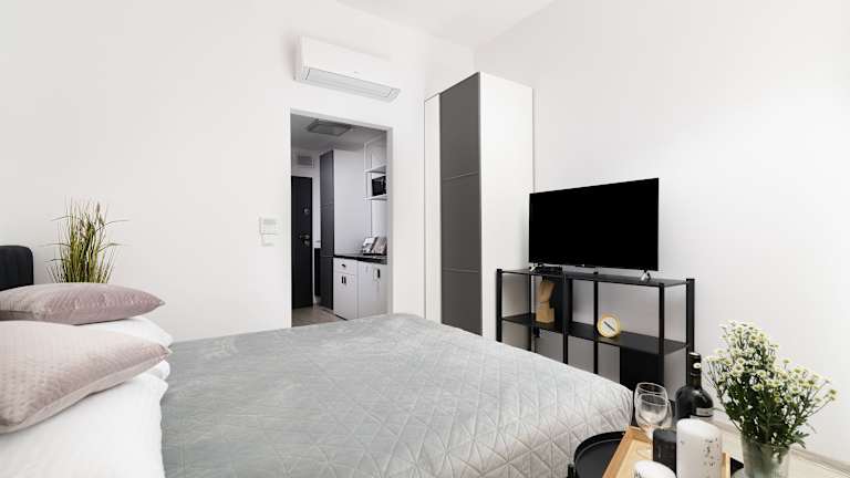 EASY RENT Apartments - Smart 5 bietet Übernachtungsmöglichkeiten mit einem Restaurant, kostenlosem WLAN, Zimmerservice und einem Conciergeservice. Die Unterkunft ist klimatisiert und ermöglicht einen 24-Stunden Check-in. Ein Privatparkplatz ist vor Ort vorhanden.