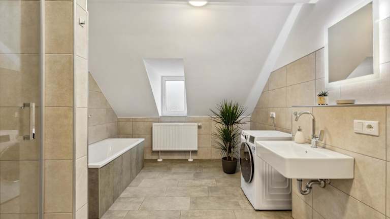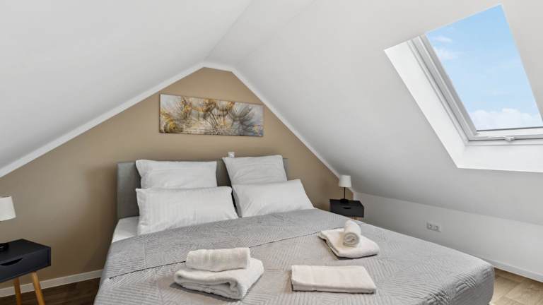 Die Ferienwohnung umfasst zwei Schlafzimmer, ein Wohnzimmer und ein Badezimmer mit Dusche. Die gut ausgestattete Küche verfügt über einen Kühlschrank und einen Geschirrspüler. Flachbild-TV sowie Handtücher und Bettwäsche werden bereitgestellt.