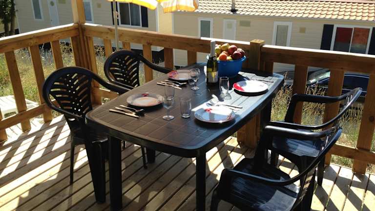 Die Mobilheime sind klimatisiert und verfügen über eine Küche mit Essbereich, LCD-Sat-TV sowie ein Bad mit Dusche und WC. Sie bieten zudem eine möblierte Terrasse. Die Safari-Zelte verfügen über eine Küche, einen Essbereich und Gartenmöbel, wobei die Sanitäranlagen gemeinschaftlich genutzt werden.