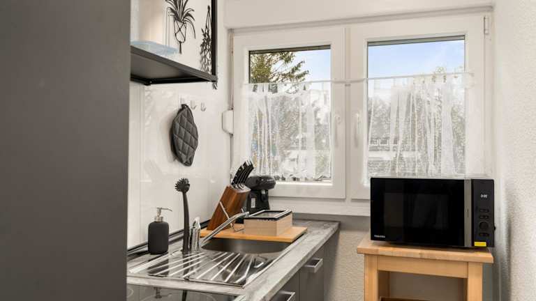 Die Ferienwohnung umfasst ein separates Schlafzimmer, ein Badezimmer und ein Wohnzimmer. Zur Ausstattung gehört ein Flachbild-TV, sowie der Zugang zu kostenlosem WLAN.