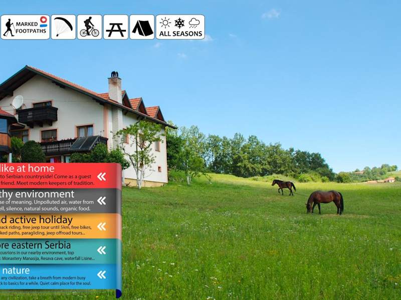 Das Guesthouse Milanovic befindet sich in einem malerischen serbischen Dorf in der Nähe von Despotovac. Hier können Sie die ruhige und natürliche Umgebung genießen und dem hektischen Alltag entfliehen. Die Region bietet eine Vielzahl von Outdoor-Aktivitäten wie Reiten, Radfahren und Angeln. In der Nähe befinden sich auch einige sehenswerte Orte wie die Resava-Höhle, eine faszinierende unterirdische Welt, und der Lisine-Wasserfall, der mit seiner Schönheit beeindruckt.