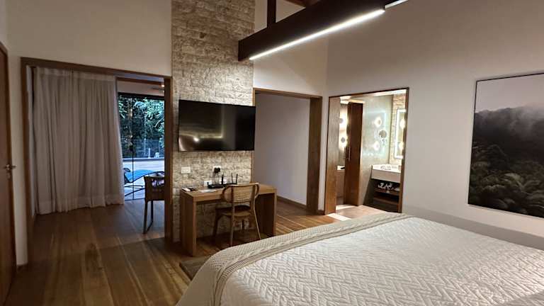 Das Eco Resort Hotel Villa São Romão bietet private Chalets in malerischer Lage auf einem Hügel. Die Unterkunft ist umgeben von Naturlandschaften und bietet verschiedene Freizeitaktivitäten im Bereich Öko-Tourismus.