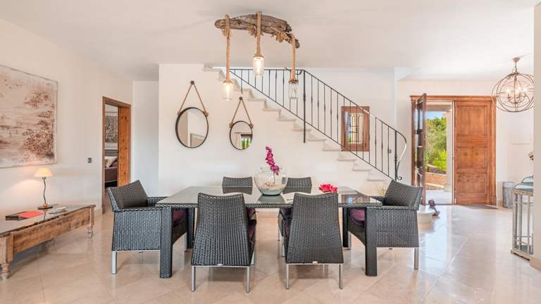 Die Eco Villa Na Clavet bietet eine private Unterkunft mit einem Garten und einem eigenen Pool. Die Villa ist geräumig und umfasst 4 Schlafzimmer und 3 Badezimmer. Es stehen eine voll ausgestattete Küche und eine Terrasse mit Bergblick zur Verfügung. Zudem wird ein kostenloser Privatparkplatz angeboten, und es gibt Regelungen zur Sauberkeit, darunter die Desinfektion zwischen den Aufenthalten.