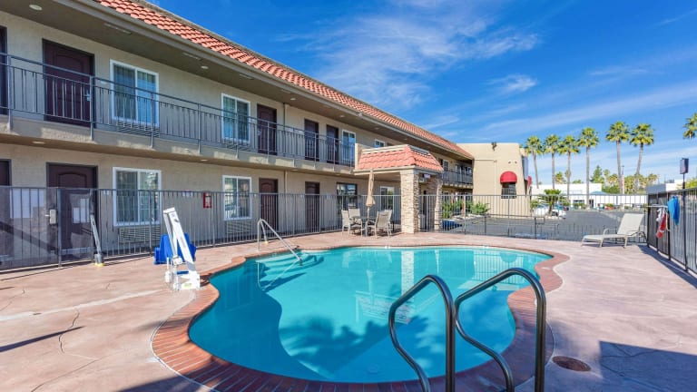 Das Econo Lodge Inn & Suites Escondido Downtown bietet 69 Zimmer und verschiedene Serviceleistungen für die Gäste. Dazu gehören eine 24-Stunden-Rezeption, ein Businesscenter, ein Wäscheservice sowie ein Getränkeautomat. Rollstuhlgerechte Einrichtungen sind vorhanden, und der Parkplatz kann kostenfrei genutzt werden. Die Unterkunft ist rauchfrei und akzeptiert verschiedene Kreditkarten für die Bezahlung. Unterhaltungsmöglichkeiten umfassen einen Außen- und einen Indoor-Pool sowie einen Whirlpool im Wellnessbereich.