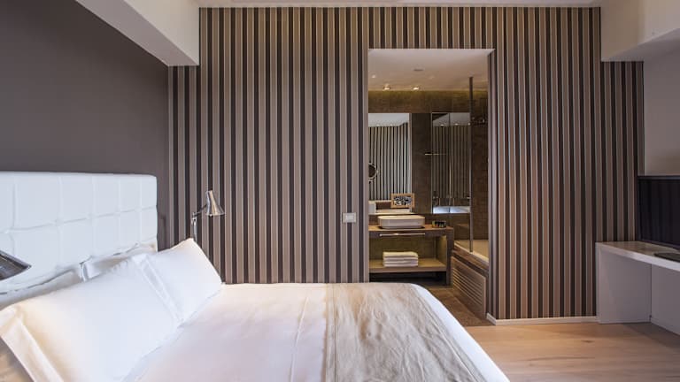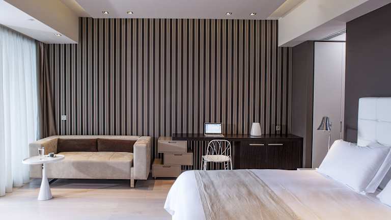 Alle Suiten im Aqua Blu bieten dem Gast tagsüber natürliches Licht, das durch die großen, vom Boden bis zur Decke reichenden Fenster strömt, und romantische, versteckte Beleuchtung nach Sonnenuntergang. Designermöbel, exquisite Bettwäsche, satte Farbtöne und Eichenböden sind ein wesentlicher Bestandteil jeder Suite.