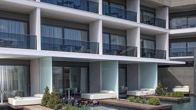 Aqua Blu, ein stolzes Mitglied der Small Luxury Hotels of the World, ist die ultimative Adresse für Luxus und zeitgenössisches Design. Ein einzigartiges 5-Sterne-Boutique-Hotel mit einem hochmodernen Spa an einer wunderschönen Ecke am Wasser auf der nördlichen Leuchtturmhalbinsel des Hafens von Kos. Eine kurze, landschaftlich gestaltete Fahrrad- und Autostraße verbindet Sie mit einem malerischen Hafen und dem Zentrum der historischen Stadt Kos mit ihren charmanten Geschäften, Museen und Restaurants am Wasser. Die atemberaubende Lage, die Nähe zur Stadt und der angrenzende Zugang zum Strand, kombiniert mit außergewöhnlichem Service und Ambiente, machen das Aqua Blu zum ultimativen Boutique-Hotel.