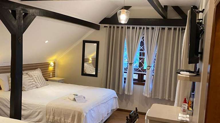 Die Zimmer im Hotel Edelweiss Pomerode sind klimatisiert und bieten allen Komfort, den Sie für einen angenehmen Aufenthalt benötigen. Jedes Zimmer verfügt über einen Schreibtisch, einen Safe, einen Flachbild-TV und ein eigenes Badezimmer mit Dusche. Bettwäsche und Handtücher werden gestellt, so dass Sie sich um nichts kümmern müssen.