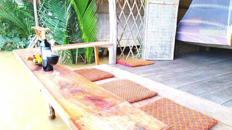 Das Eden Eco Village in Kampot bietet eine einzigartige Unterkunftsmöglichkeit inmitten der Natur. Genießen Sie den Flussblick von der Außenterrasse und lassen Sie sich im hauseigenen Restaurant kulinarisch verwöhnen. Die Zimmer werden durch Solarenergie betrieben und bieten einen Balkon mit Fluss- oder Gartenblick. Nutzen Sie die kostenfreie Nutzung der Fahrräder, um die Umgebung zu erkunden, oder nehmen Sie an einer Yoga-Sitzung teil. Wassersportliebhaber können Kajaks und Schlauchboote mieten.