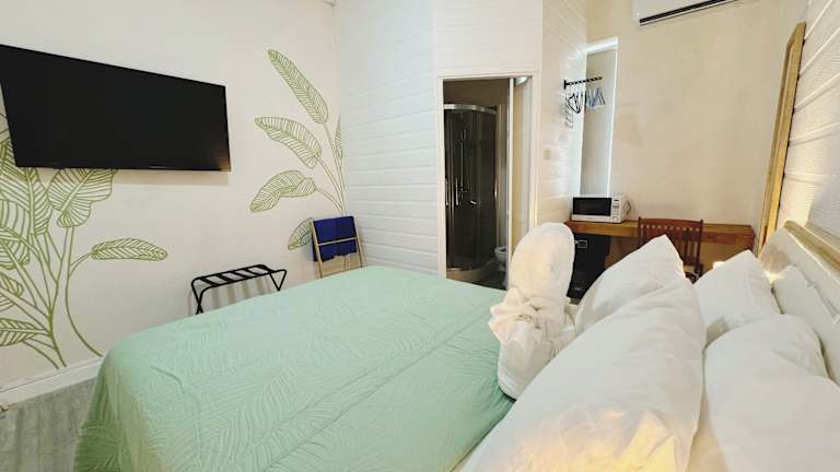 Die klimatisierten Zimmer sind mit einem Schreibtisch, einem Wasserkocher, einem Kühlschrank, einer Mikrowelle, einem Safe, einem Flachbild-TV sowie einem eigenen Badezimmer mit Dusche ausgestattet. Zudem liegen Bettwäsche und Handtücher in den Zimmern bereit.