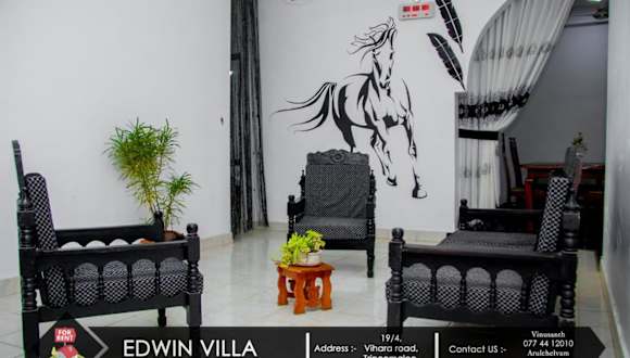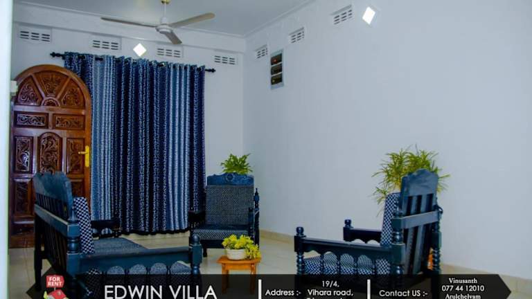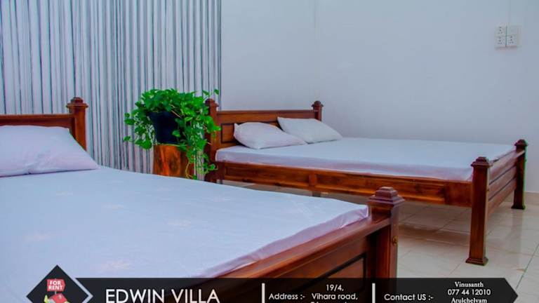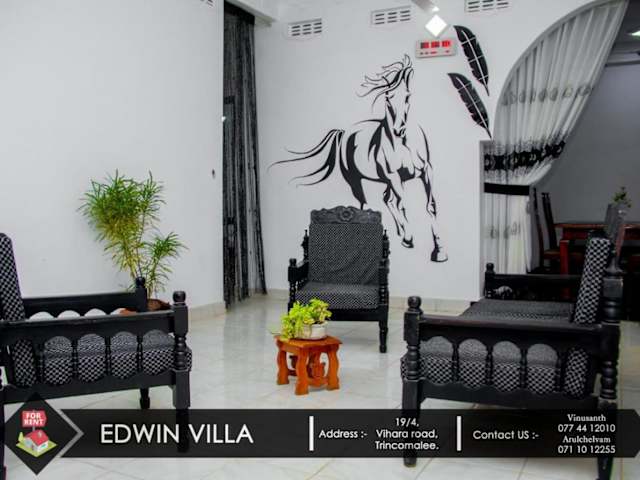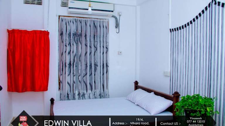 Edwin Villa befindet sich in Trincomalee, 2 km vom Dutch Bay Beach entfernt, in unmittelbarer Nähe zur Trincomalee Railway Station, die 800 m entfernt liegt. Die Unterkunft liegt zudem 700 m vom Strand Uppuveli und 1,4 km von Kali Kovil entfernt. Der Flughafen China Bay ist 9 km von der Villa entfernt und ein kostenpflichtiger Flughafentransfer wird angeboten.