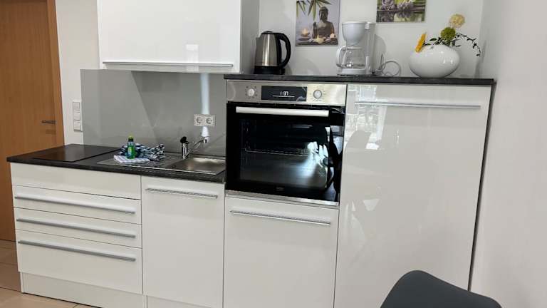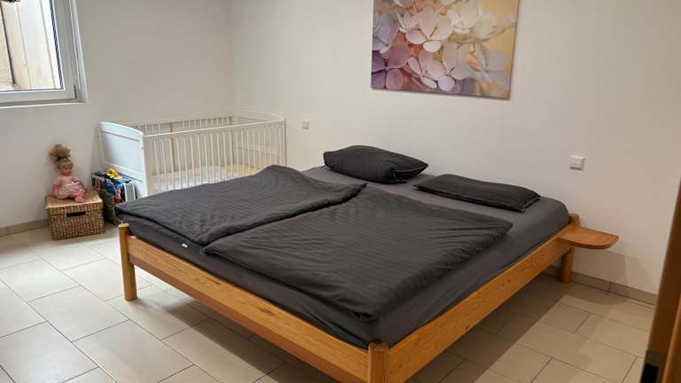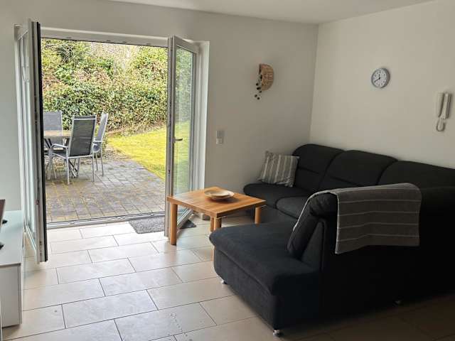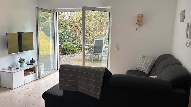 Die Wohnung verfügt über zwei Schlafzimmer, ein Badezimmer sowie eine voll ausgestattete Küche. Zur Ausstattung gehören Bettwäsche, Handtücher, ein TV mit Satellitenkanälen und eine Terrasse mit Gartenblick.