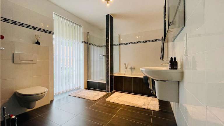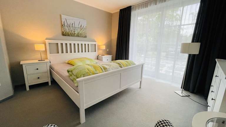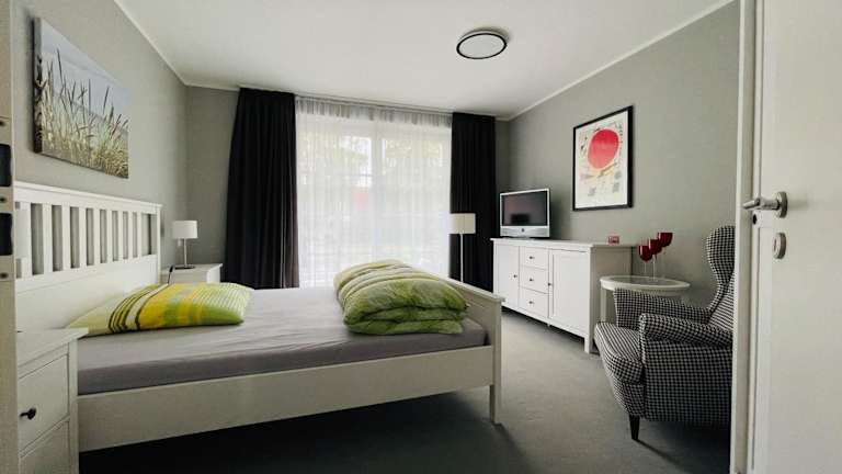 Die Ferienwohnung verfügt über ein Schlafzimmer, eine Küche mit Kühlschrank und Geschirrspüler, einen Flachbild-TV sowie einen Sitzbereich. Zudem gibt es ein Badezimmer mit Dusche. Handtücher und Bettwäsche werden bereitgestellt.