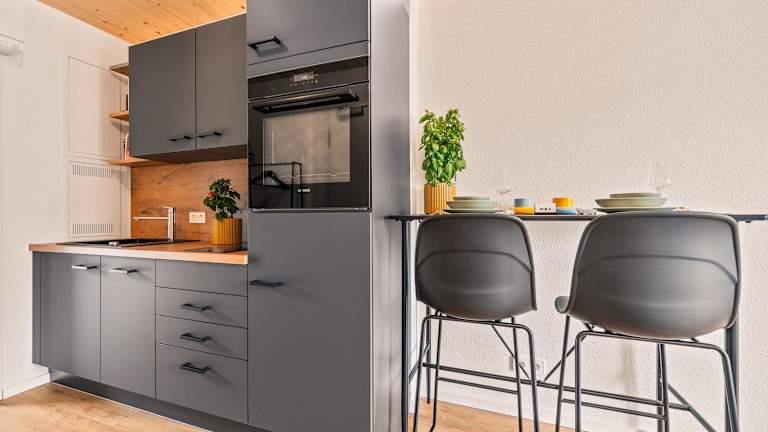 Die Ferienwohnung umfasst ein Schlafzimmer und verfügt über eine voll ausgestattete Küche mit Kühlschrank und Geschirrspüler. Zudem gibt es ein Badezimmer, das mit einer Badewanne oder Dusche und einem Haartrockner ausgestattet ist. Handtücher und Bettwäsche werden bereitgestellt.