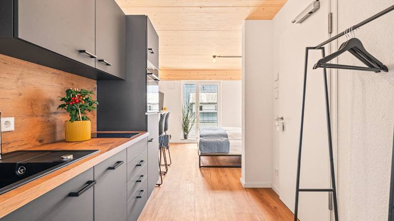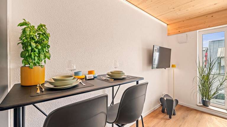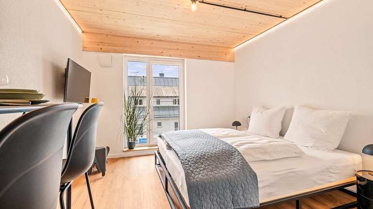 Das Einzimmer Wohlfühlapartment VIER klimatisiert bietet komfortable Übernachtungsmöglichkeiten in Form einer Ferienwohnung.