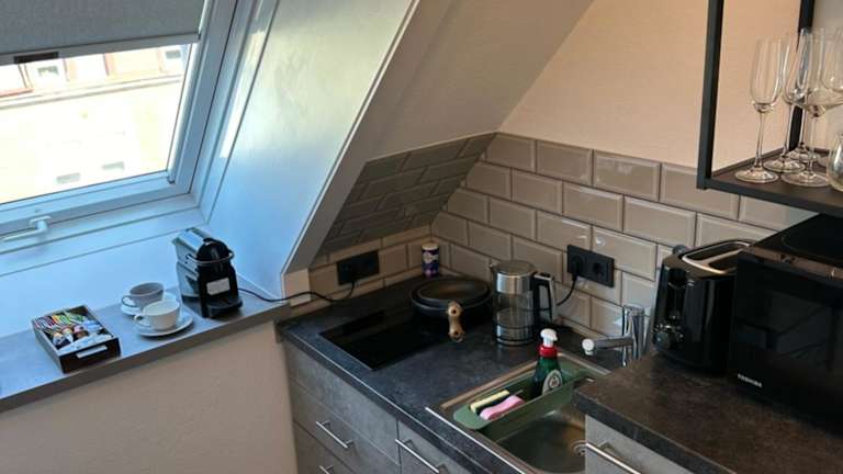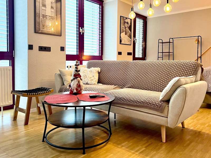 Die Ferienwohnung besteht aus einem Schlafzimmer, einem Wohnzimmer und einer voll ausgestatteten Küche, die mit einem Kühlschrank und einer Kaffeemaschine ausgestattet ist. Zudem steht ein Badezimmer mit Dusche und kostenlosen Pflegeprodukten zur Verfügung. Handtücher und Bettwäsche werden bereitgestellt.