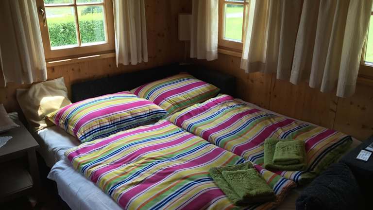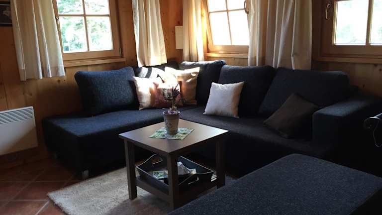 Das Chalet umfasst ein Schlafzimmer, ein Wohnzimmer und eine voll ausgestattete Küche mit Kühlschrank und Kaffeemaschine. Zudem stehen ein Badezimmer mit Dusche und Haartrockner sowie Handtücher und Bettwäsche zur Verfügung.