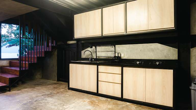 Die Villa in EJ House ist klimatisiert und verfügt über ein Schlafzimmer, eine voll ausgestattete Küche und eine Terrasse mit Meerblick. Handtücher und Bettwäsche sind ebenfalls vorhanden. Es sind Nichtraucherzimmer verfügbar.