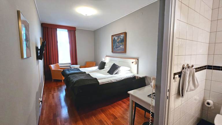 Das Hotel Eksjö Stadshotell befindet sich direkt am Stora Torget, dem Hauptplatz von Eksjö. Die Lage ist ideal, um die Altstadt mit ihren gut erhaltenen Holzhäusern zu erkunden. Der Bahnhof von Eksjö ist nur 5 Gehminuten entfernt, was das Hotel auch für Reisende mit öffentlichen Verkehrsmitteln gut erreichbar macht. In der Umgebung finden Sie das Eksjö-Museum und das Kunstmuseum Albert Engström.