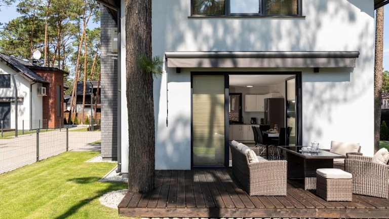 Die Villa Ekskluzywny wypoczynek w domu nad morzem bietet eine Terrasse mit Gartenblick und umfasst eine voll ausgestattete Küche sowie eine Gemeinschaftsküche. Die Unterkunft verfügt über Klimaanlage, kostenloses WLAN sowie einen Grill.