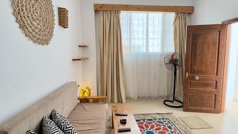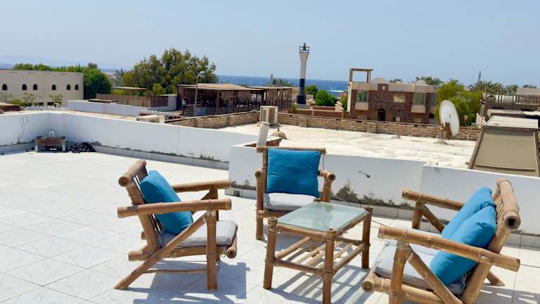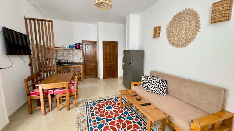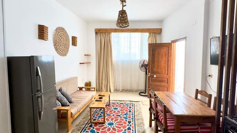 Genießen Sie einen entspannten Aufenthalt im New Cozy Apartment with roof top sea view in Dahab. Das Apartment bietet eine ideale Lage nur 300 m vom Strand entfernt und verfügt über kostenfreies WLAN. Das klimatisierte Apartment bietet Platz für bis zu 4 Personen und verfügt über 2 Schlafzimmer, ein Wohnzimmer, eine voll ausgestattete Küche und ein Badezimmer. Handtücher und Bettwäsche werden gestellt. Der internationale Flughafen Scharm El-Scheich ist nur 93 km entfernt.
