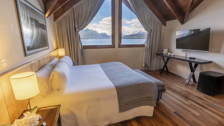 Das Hotel liegt in Villa La Angostura, etwa 2 km vom Stadtzentrum entfernt. Die Lage bietet einen fantastischen Blick auf den Nahuel Huapi-See und die Umgebung. Öffentliche Verkehrsmittel halten direkt vor dem Hotel. In der Umgebung gibt es einen felsigen und kiesigen Strand, der zu erholsamen Spaziergängen einlädt.