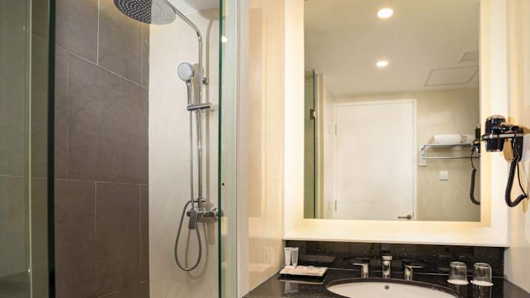 Die klimatisierten Zimmer sind mit Doppel-, Queensize- oder Kingsize-Betten ausgestattet. Sie verfügen über einen Schreibtisch, einen Kühlschrank, einen Wasserkocher, einen Safe und einen Flachbild-TV. Jedes Zimmer hat ein eigenes Badezimmer mit Dusche, Bidet und Haartrockner. Zudem sind die Zimmer mit Hausschuhen, Bettwäsche und Handtüchern ausgestattet.