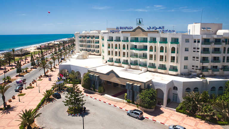 Das El Mouradi Hammamet liegt im Ferienort Yasmine Hammamet direkt am Meer und bietet Zugang zu einem wunderschönen Sandstrand. Es ist nur 200 Meter vom Vergnügungspark CarthageLand, 500 Meter von der ersten Eislaufbahn Tunesiens und 700 Meter vom Casino entfernt, während die Stadt Hammamet acht Kilometer entfernt liegt. Für Golfer gibt es zwei Plätze in nur sechs Kilometern Entfernung: Yasmine Golf (27 Löcher) und Citrus Golf (45 Löcher). Der internationale Flughafen Tunis-Karthago ist 80 Kilometer entfernt