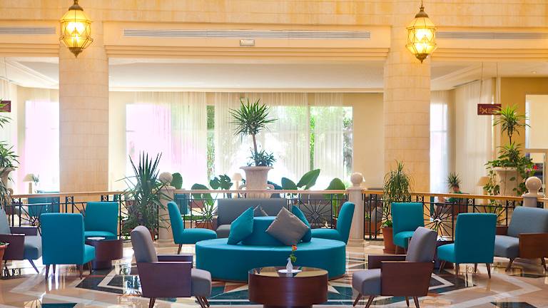 Das Hotel liegt im Badeort Yasmine Hammamet und bietet zahlreiche Sport-, Freizeit- und Wellnesseinrichtungen, darunter Innen- und Außenpools. Es befindet sich direkt am Meer, vor einem wunderschönen Sandstrand. Die Unterkünfte sind farbenfroh, geräumig und einladend. Die Zimmer verfügen über einen privaten Balkon mit Blick auf die Umgebung. Der große Außenpool ist von Liegestühlen umgeben, auf denen Sie sich unter Palmen entspannen und die Sonne genießen können. Der Wellnessbereich umfasst eine Sauna und bietet Massagen an. Wenn Sie einen aktiven Urlaub wünschen, stehen Ihnen Tennisplätze und ein Fitnesscenter zur Verfügung. Nach einem ereignisreichen Tag können Sie ein romantisches Abendessen auf der Terrasse genießen, begleitet von einem Konzert lokaler Musik. Das El Mouradi Hammamet liegt nur 200 Meter vom Vergnügungspark Carthage Land und 6 km vom Golfplatz Yasmine entfernt. Besuchen Sie unbedingt Hammamet mit seiner historischen Altstadt und Medina, die 5 km entfernt liegt. Das El Mouradi Hammamet ist stolz darauf, seit 2015 nach ISO 9001 zertifiziert zu sein, was die Qualität seiner Dienstleistungen und Prozesse garantiert.