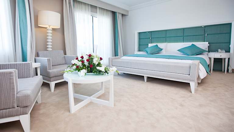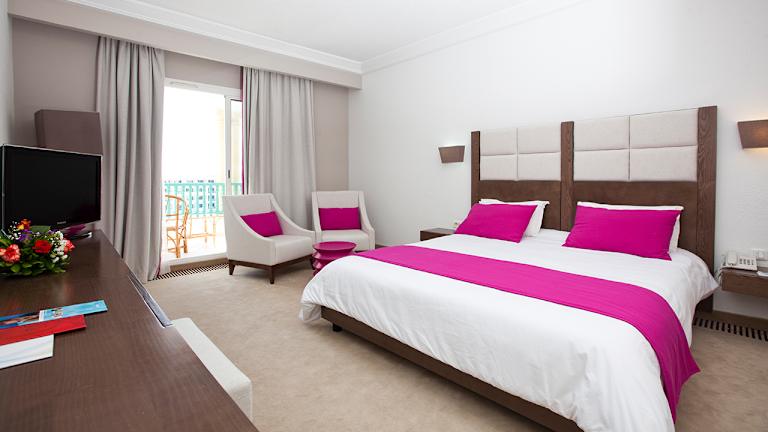 Das El Mouradi Hammamet bietet 243 Doppelzimmer, 100 Dreibettzimmer, 33 Junior-Suiten und 1 Senior-Suite. Alle Zimmer sind klimatisiert und verfügen über eine Terrasse oder einen Balkon sowie ein komplettes Badezimmer, Direktwahltelefon, Satellitenfernsehen, Haartrockner, Minibar und Safe