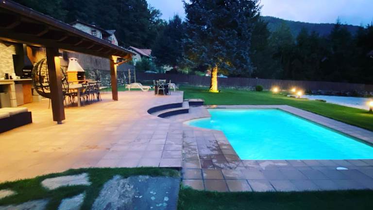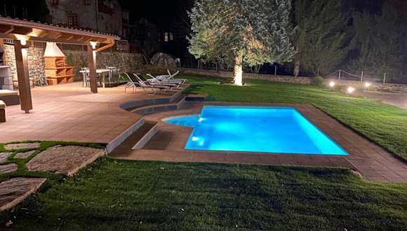 Das El Niu de l'Àguila in Camprodon bietet eine komfortable und gut ausgestattete Unterkunft für Ihren Aufenthalt. Mit einem eigenen Pool, einem Garten und Grillmöglichkeiten können Sie hier die Natur genießen und sich entspannen. Die Villa verfügt über 7 Schlafzimmer, ein geräumiges Wohnzimmer und eine voll ausgestattete Küche. WLAN und Privatparkplätze stehen Ihnen kostenfrei zur Verfügung. Die Nähe zur Skistation Vall de Núria macht das El Niu de l'Àguila zu einem idealen Ausgangspunkt für Skifahrer. Erkunden Sie die umliegende Landschaft und genießen Sie einen unvergesslichen Aufenthalt.