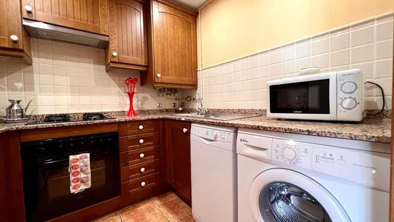 Die Ferienwohnung verfügt über 3 Schlafzimmer, eine Küche mit Kühlschrank und Geschirrspüler sowie ein Badezimmer mit Bidet, Haartrockner und Waschmaschine. Zur Ausstattung gehört außerdem ein Flachbild-TV.