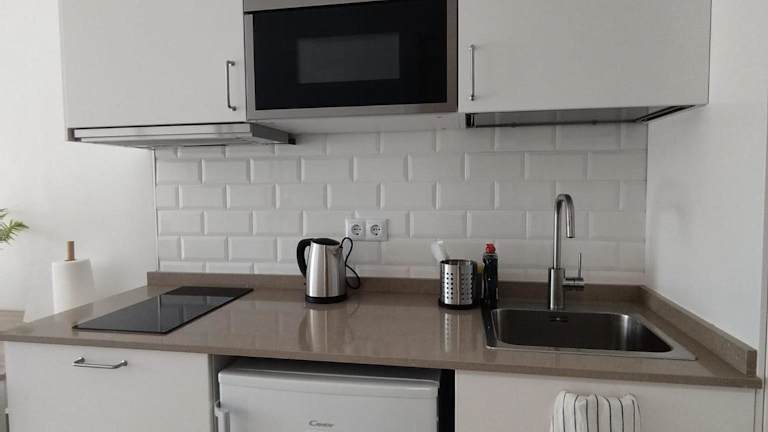 Die Unterkunft bietet Übernachtungsmöglichkeiten in einem Apartment mit 1 Schlafzimmer und 1 Badezimmer. Zur Ausstattung gehören Bettwäsche und Handtücher sowie ein Flachbild-TV mit Satellitenkanälen. Eine voll ausgestattete Küche steht den Gästen zur Verfügung. Zudem gibt es einen Balkon mit Stadtblick.