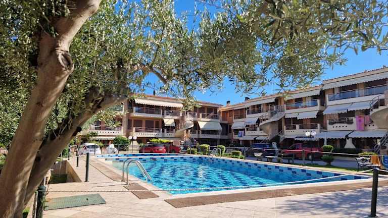 Die Unterkunft befindet sich direkt am Strand Gerakini, nur etwa 40 Meter vom Meer entfernt. Der Strand Moudania-Nikiti ist 2,8 km entfernt, während das Anthropologische Museum & Höhle von Petralona sich in einer Entfernung von 36 km befindet. Der Flughafen Thessaloniki ist 67 km von der Unterkunft entfernt und es wird ein kostenpflichtiger Flughafentransfer angeboten.