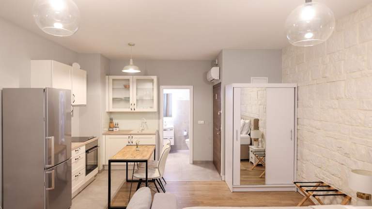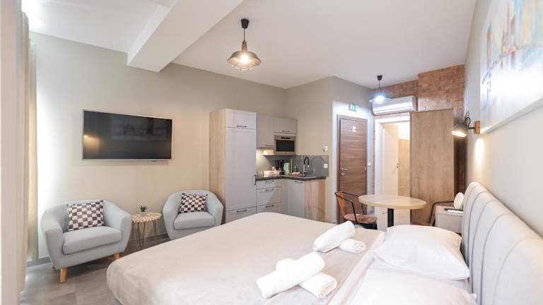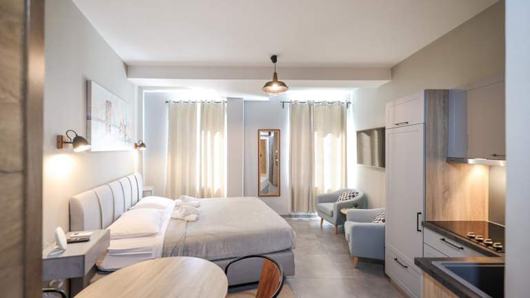 Jede Wohneinheit in den Elegance Studio Apartments bietet eine voll ausgestattete Küche, die unter anderem Kühlschrank, Geschirrspüler, Ofen und Wasserkocher umfasst. Des Weiteren sind die Apartments mit einem Flachbild-TV mit Satellitenkanälen und einem eigenen Badezimmer ausgestattet, das eine Dusche, kostenlose Pflegeprodukte und einen Haartrockner beinhaltet.